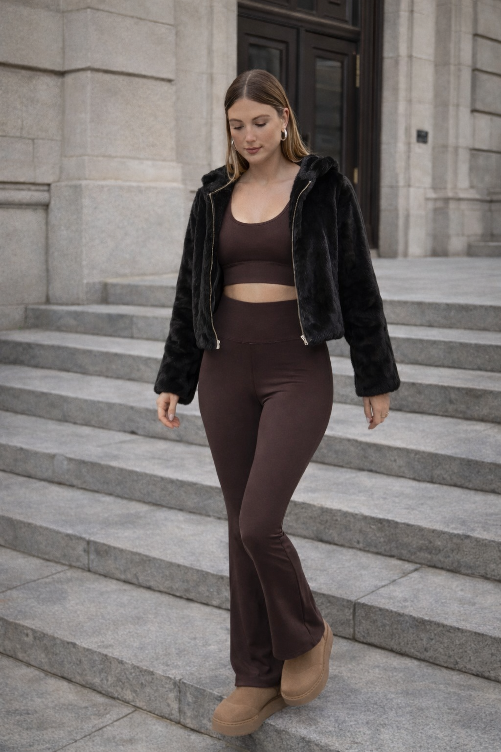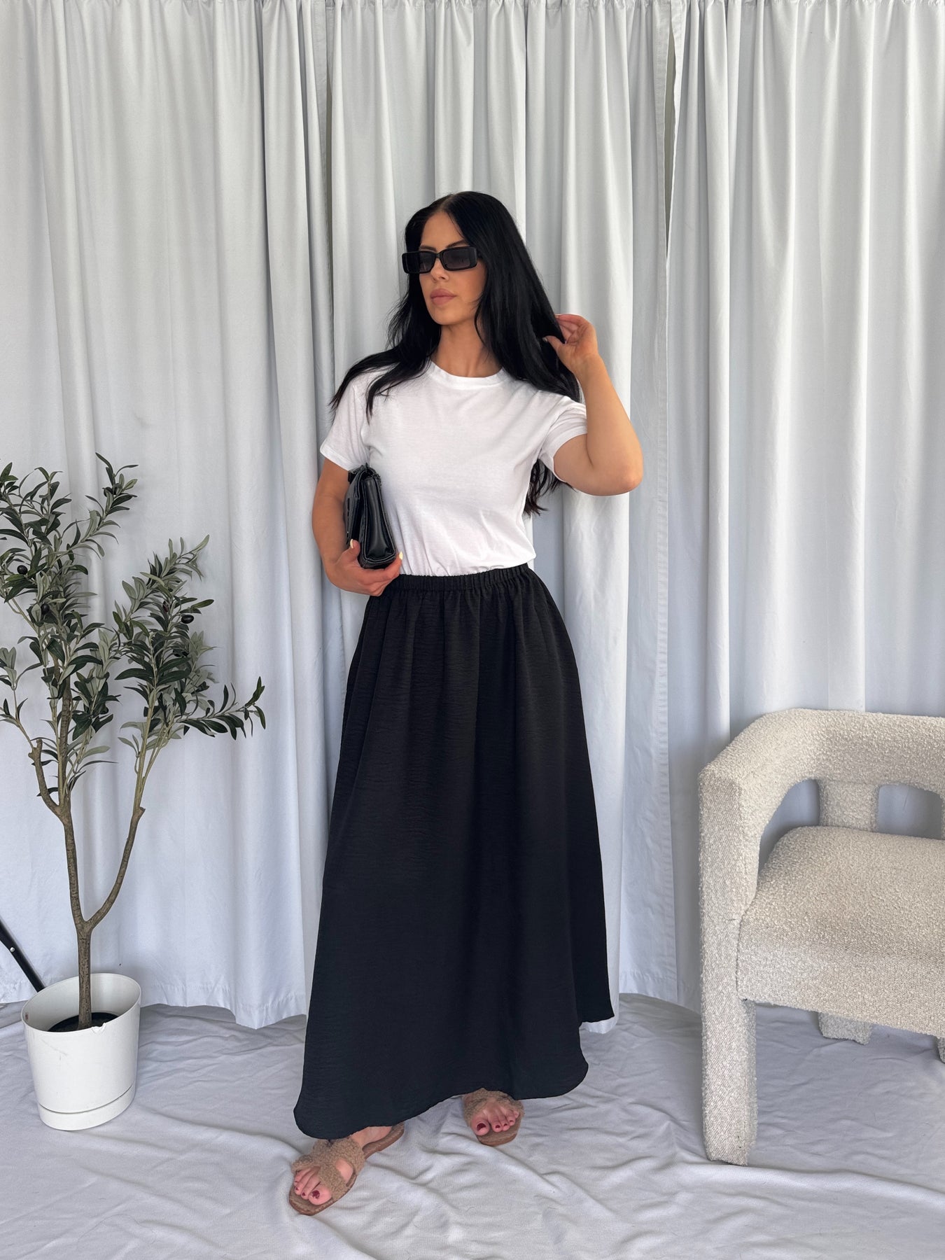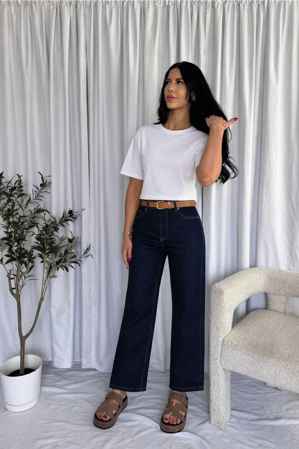 She is a confident & trendy babe who values effortless style and practicality. She seeks high-quality, neutral essentials that seamlessly integrate into her everyday wardrobe, allowing her to stay chic and comfortable from day to night.