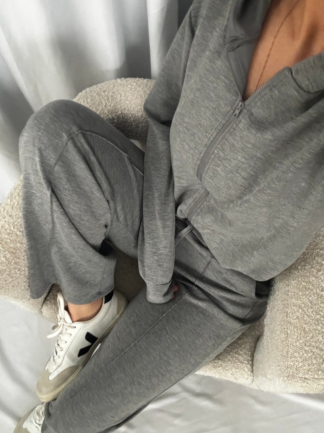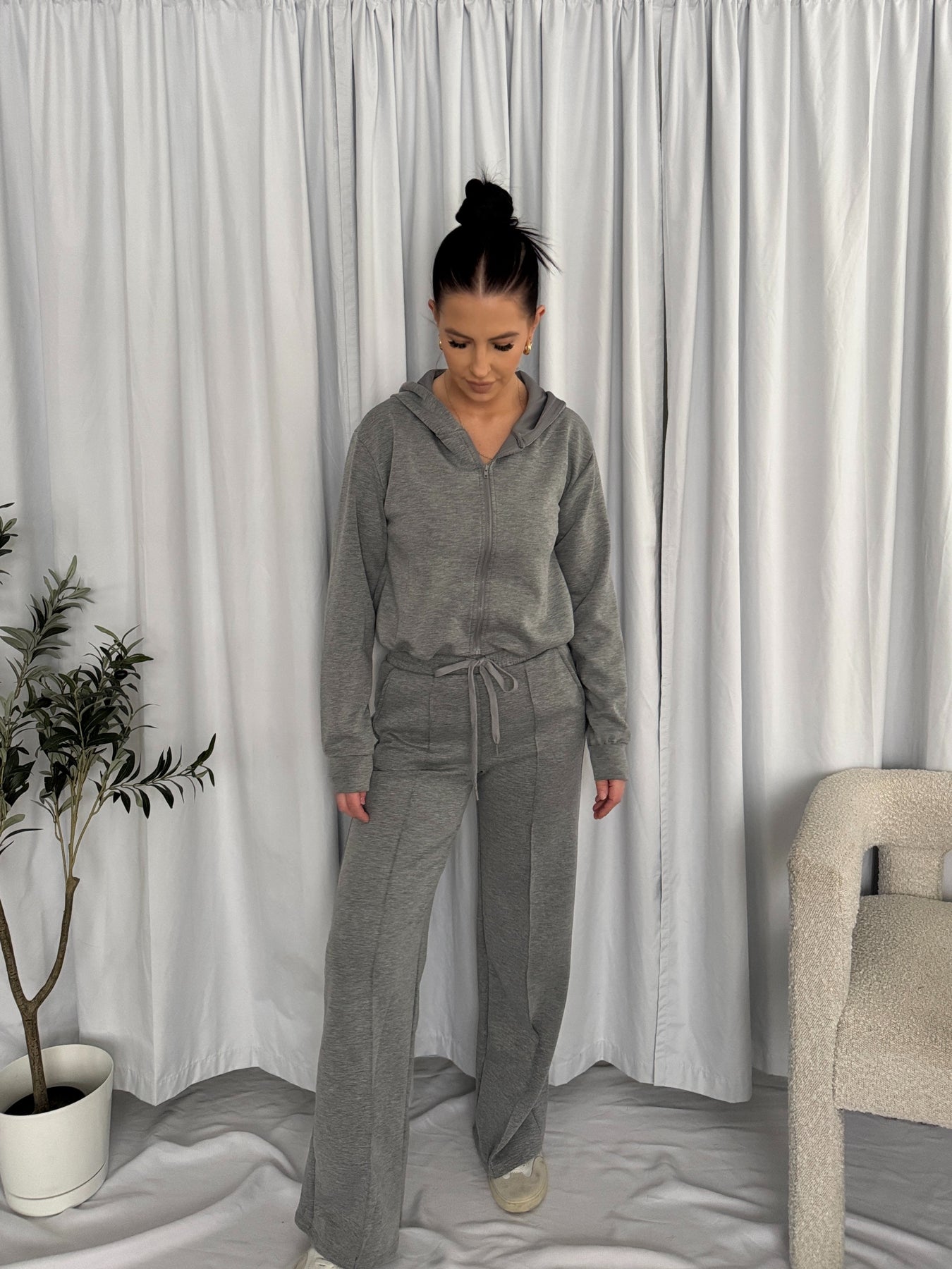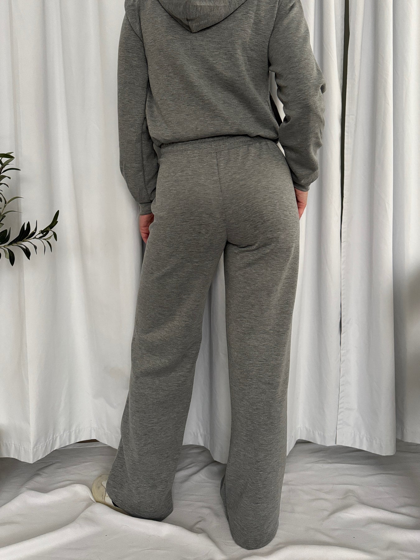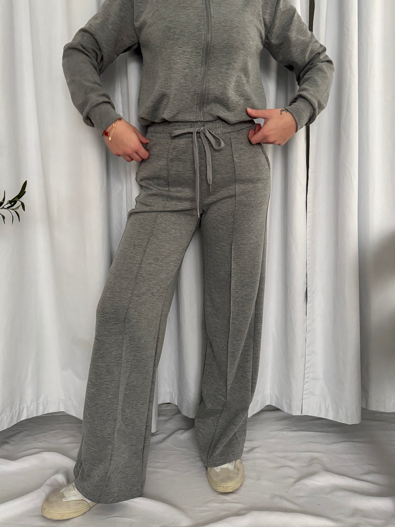 The Nicolette Matching Set combines comfort and style with their ribbed texture and high-rise elastic waistband, ensuring a secure yet flexible fit. Crafted in a solid color with a vertical rib pattern, these full-length pants feature a straight leg silhouette that flatters various body types. Ideal for both casual and refined looks, they offer versatility and ease of wear without compromising on sophistication.